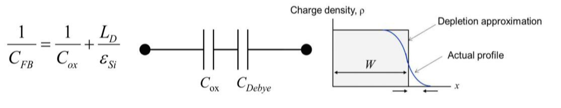 위와 같이 flat band상황에서 L_D가 형성되고, L_D식에서 C_Debye를 추출할 수 있게 됩니다.