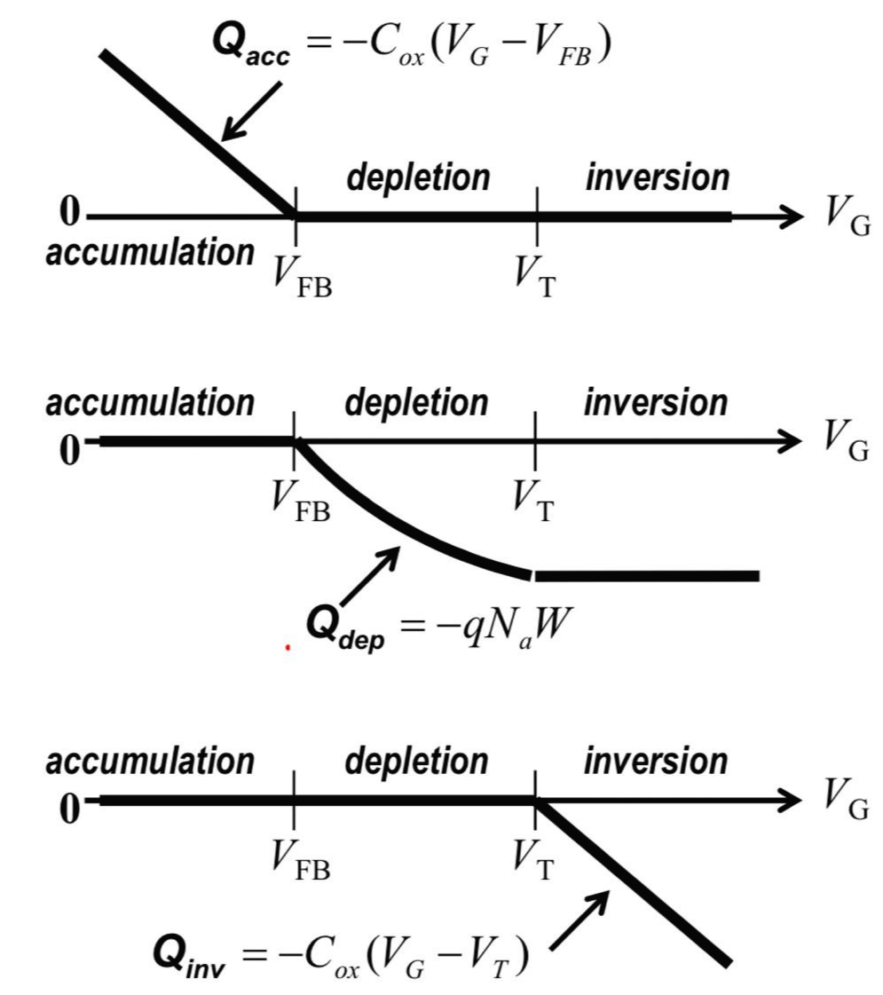 위 그림은 MOSCAP에서 유의해야 할 다양한 Q값들에 대해 나타내고 있습니다. 각각을 자세히 살펴봅시다!