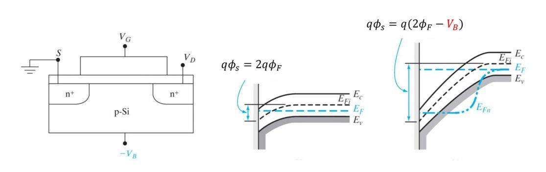 여기서 V_B(body voltage)의 부호에 따라 변하는 V_T에 대해 집중적으로 확인해 봅시다.