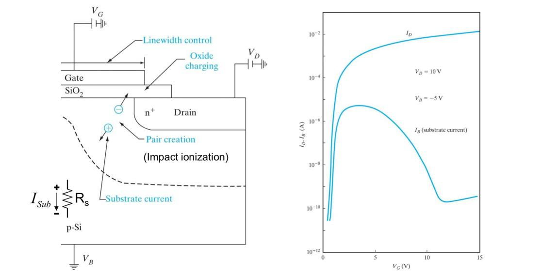 이러한 현상의 발생 여부를 알아보려면, impact ionization에서 발생된 substrate current를 측정하면 됩니다.