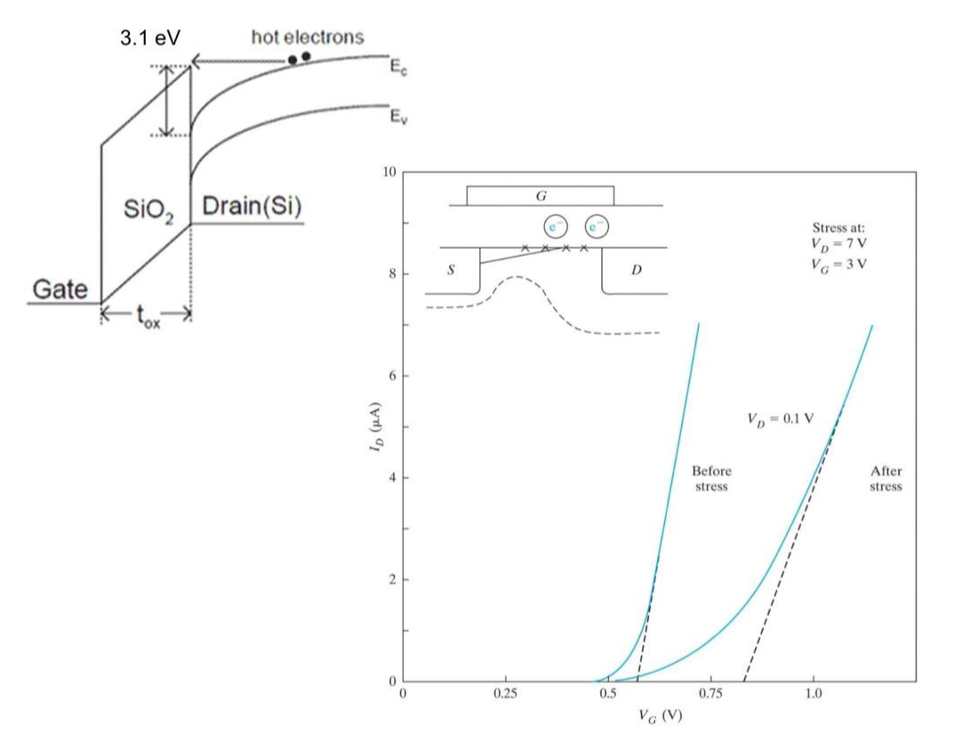 hot carrier인 e-는 oxide에 charging되면서 문제가 발생합니다.