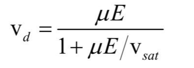 E-field가 ~10^4V/cm 이상으로 높아진다면, carrier의 drift current가 더이상 증가하지 않고 saturation되는 현상이 일어납니다.