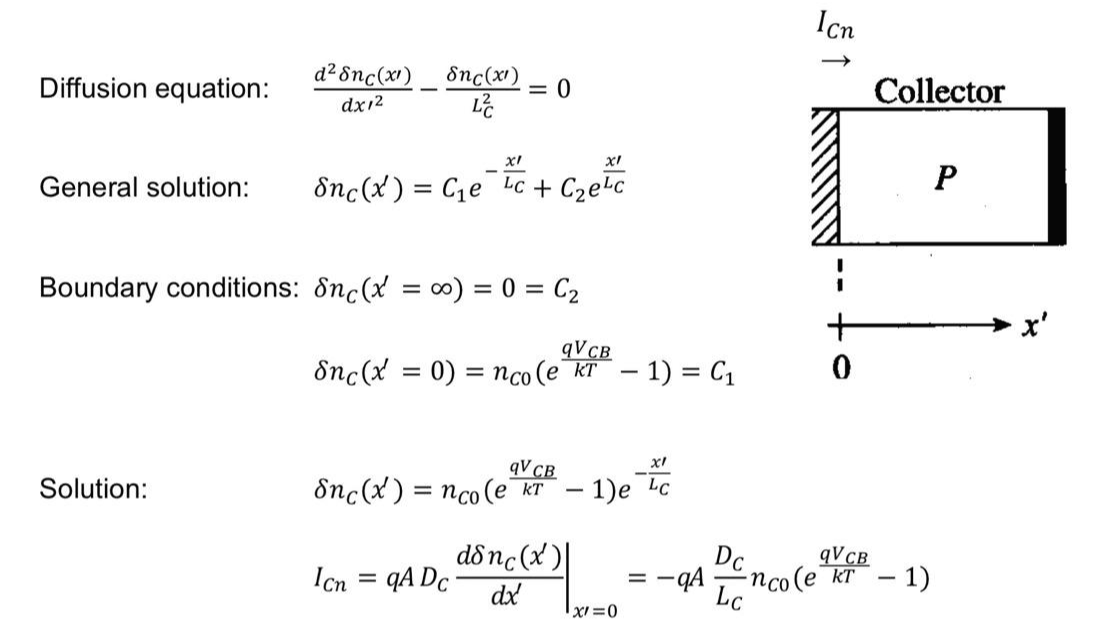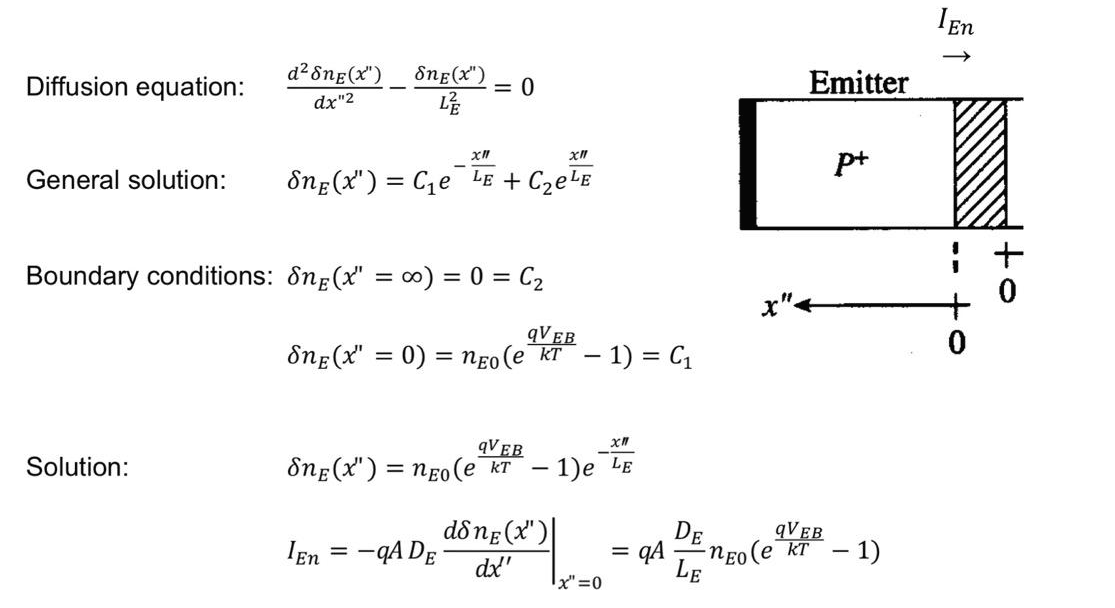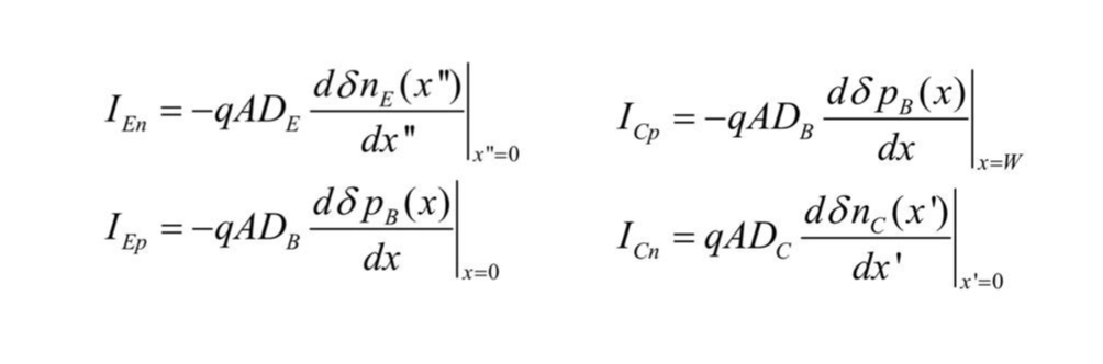 위 그림을 통해서 Emitter와 Collector에서 n과 p의 current를 구할 수 있습니다.