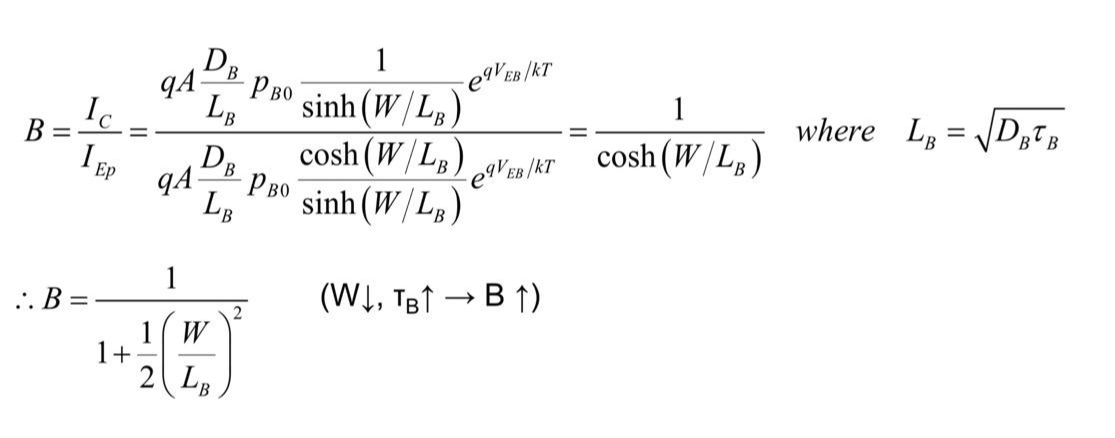 Base에서 recombination이 잘 일어나지 않게 B를 크게 해줘야 하고(1에 가깝게),
