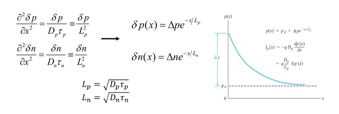 알아둬야 할 점은 D, 타우, L은 minority carrier를 기준으로 한다는 것!!