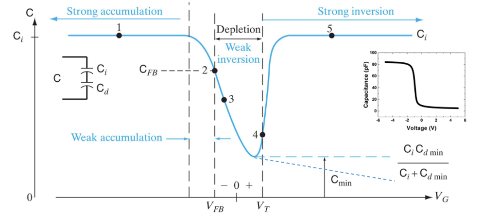 그렇기에 이 cap은 전압에 민감하게 반응하고, high-frequency일 때는 위와 같은 C_ox 경향을 보입니다.