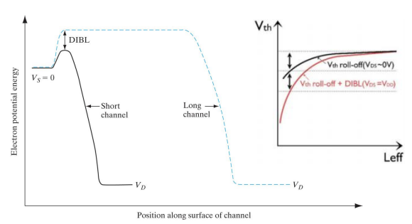 V_ds가 높고 channel length가 짧으면 roll-off보다 DIBL이 더 심각하게 나타나게 됩니다.