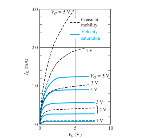 lateral scaling으로 인해 E-field가 증가했고 이 이유로 v_d = uE에 의해 E-field와 volocity는 linear한 관계를 가진다고 볼 수 있습니다.