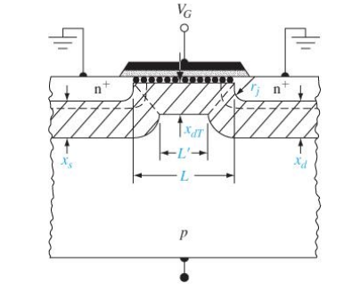 channel length(L)이 감소하면서 depletion영역이 감소하게 됩니다.