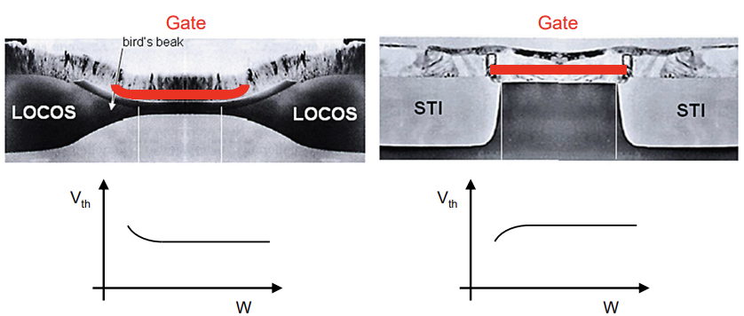 Narrow Width Effect는 tansistor 각각을 고립되게 막아주는 방식에서 생기는 문제점을 말합니다.