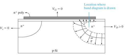 off 상태에서 drain영역의 valance band에서 conduction band로 electron이 흐르는 tunneling이 발생하게 됩니다.