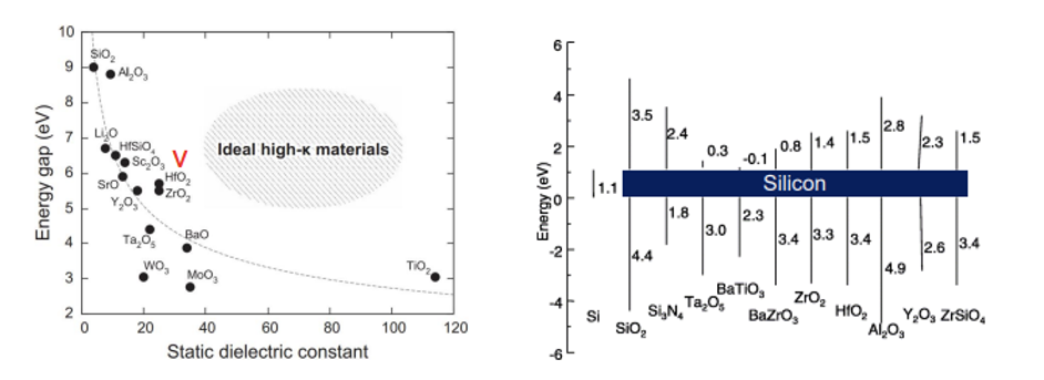 그래서 사용한느 것이 high-k 물질을 사용해 EOT를 줄이는 것 입니다.