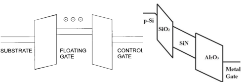 사이의 ONO는 oxide-nitride-oxide로, 전하는 이곳을 통과하게 됩니다.
