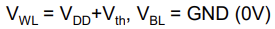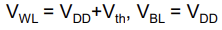 V_BL에 V_DD만큼의 전압이 있기 때문에 생긴 전압차로 transistor에 전압차가 생기게 되고, capacitor에 전하를 저장할 수 있게 됩니다.