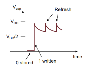 DRAM은 시간이 지날수록 캡의 전하가 빠져나가며 기존 상태를 잃게 됩니다.