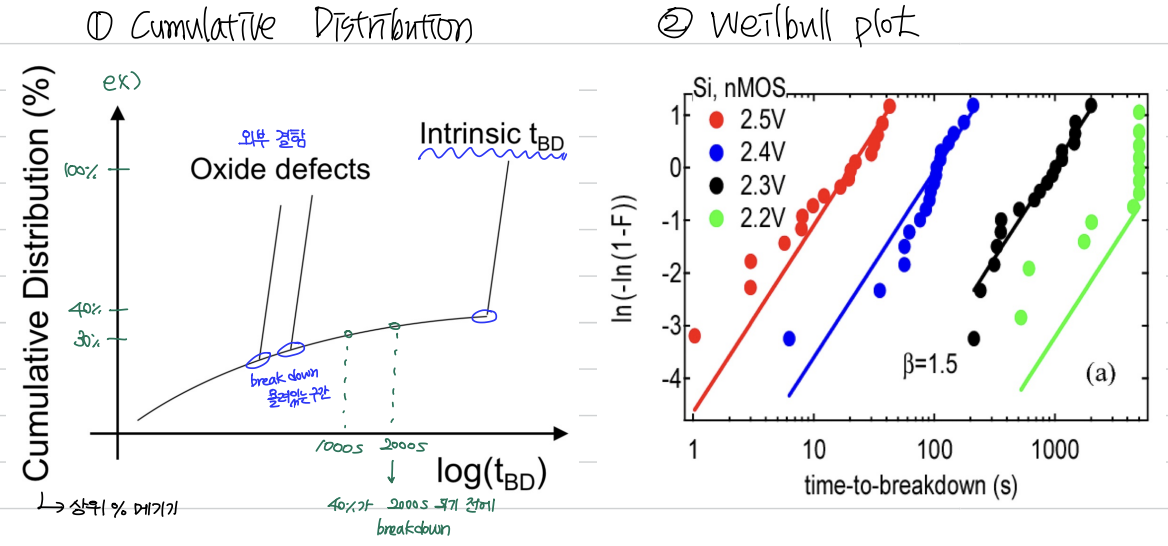 gate oxide(dielectric film)에 stress를 줘 얼마나 동작을 하는지 life time을 평가하는 statistically(통계적) 방법입니다.