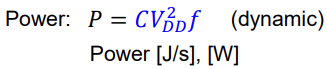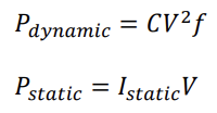CMOS에서 dynamic power와 static power는 다음과 같이 나타낼 수 있습니다.