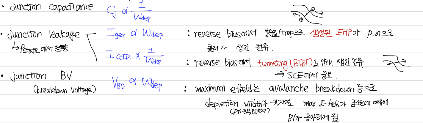 junction depletion width에 따른 trade off는 다음과 같이 존재합니다.