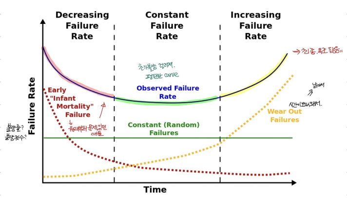 time-gailure rate 그래프는 욕조를 닮아 bathtub라고 불립니다.