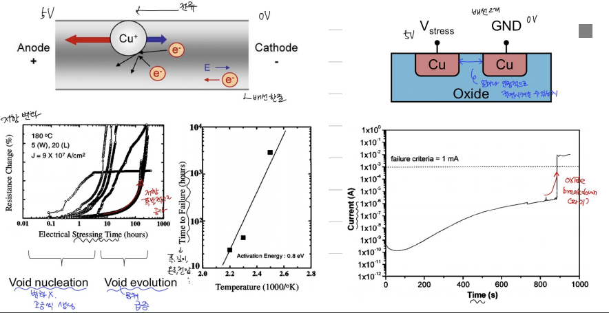 interconnection의 reliability는 EM(Electromigrate)과 BTS(bias temperature stress)가 있습니다.
