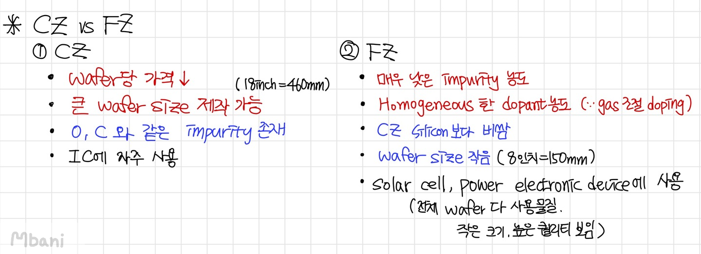 - p/n type을 위한 dopant 추가는 녹인 상태에서 추가로 넣어줌