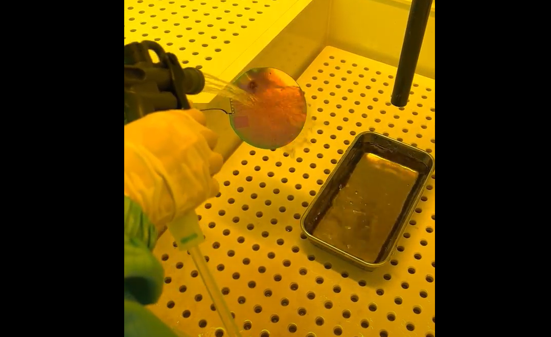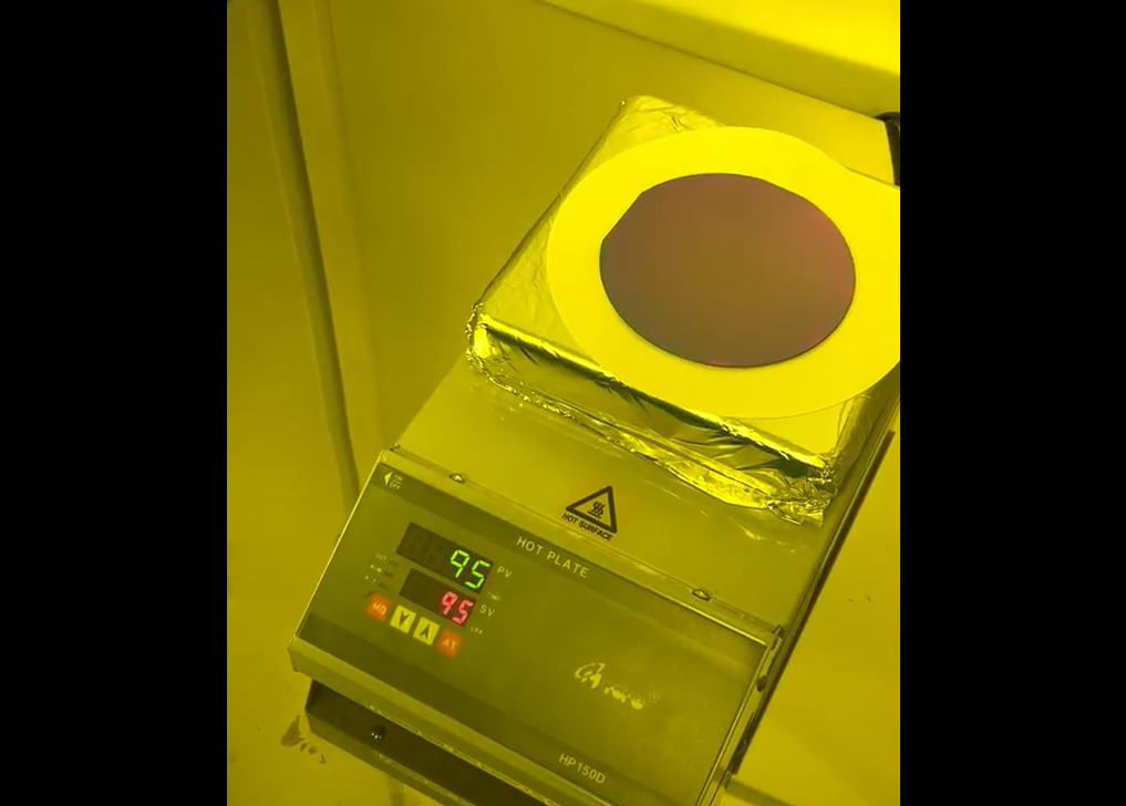⑧ soft bake 진행 -> hot plate 위에 wafer를 얹어 1m30sec bake 진행