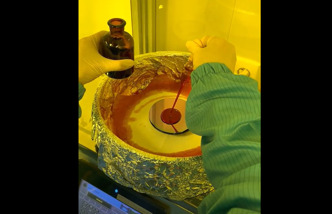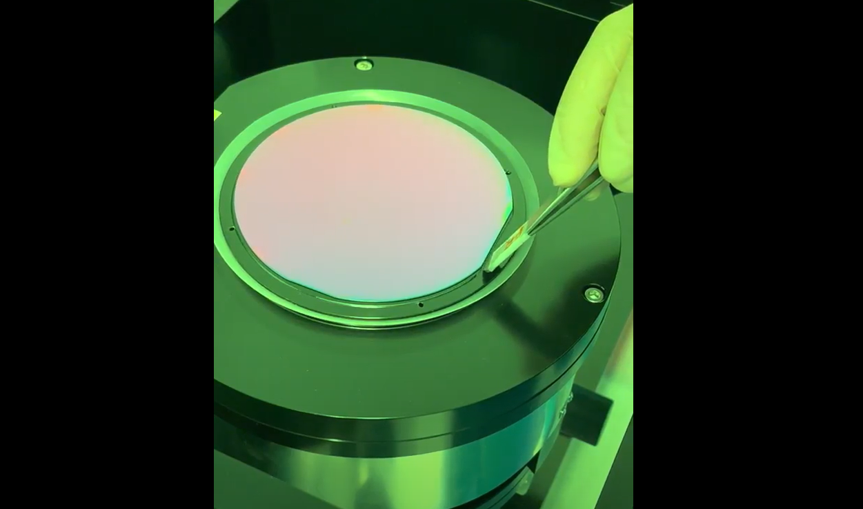 ④ spin coating 장비 내부에 검정색 chuck 위에 wafer를 놓음