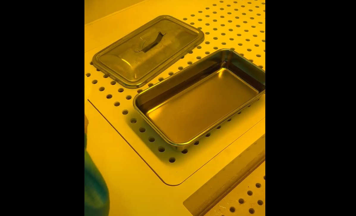 ② water에 넣어 developer를 씻어내고 water gun으로 완벽히 씻어냄
