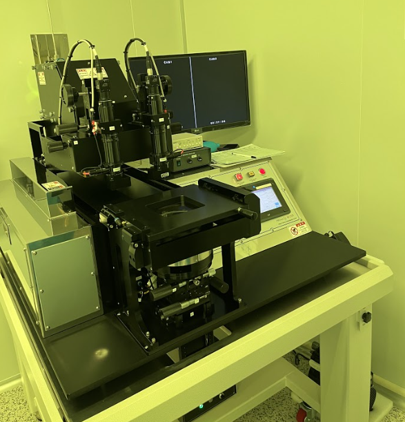트위저 뒷부분으로 wafer와 chuck의 중심을 맞추고 vacuum 스위치로 고정시킴
