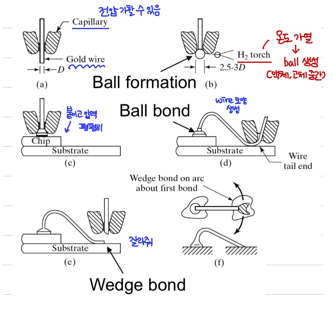 이 bonding 방법은 압력과 온도의 combination을 통해 gold wire를 붙이는 과정입니다.