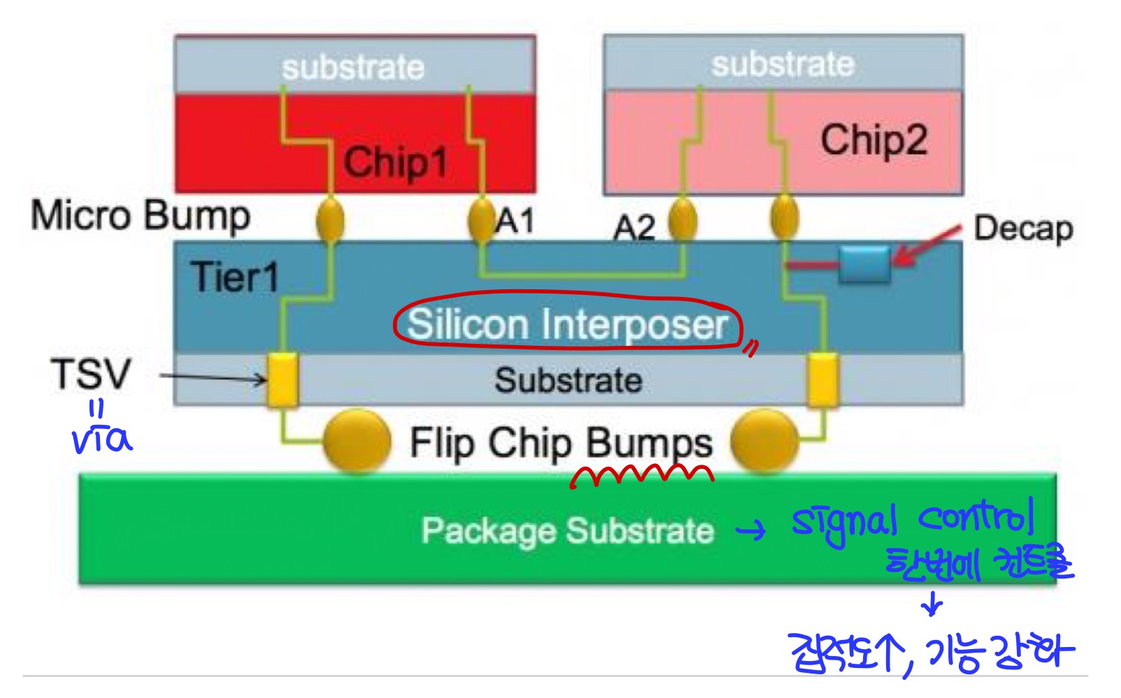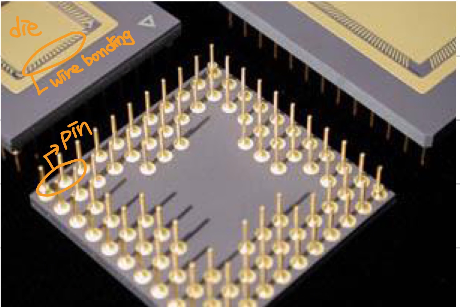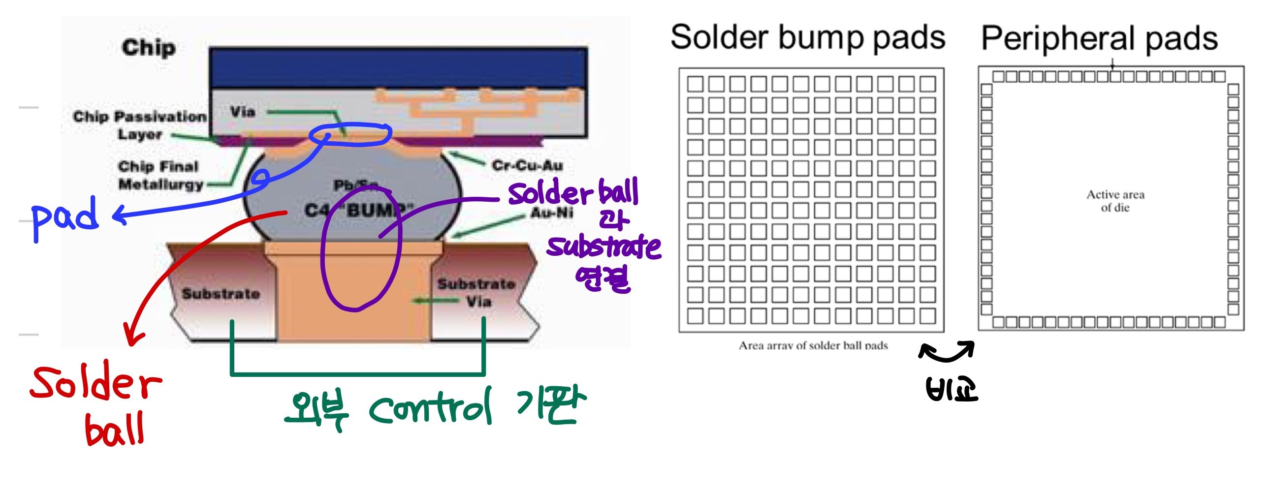 ⅱ. die와 substrate 사이에서의 짧은 bond 형성 가능 : wire 화살표 -> RC delay 화살표