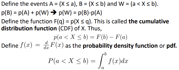 위 과정에서 보았듯이, p(a ≤ x ≤ b) = F(b) - F(a)로 구해지고, 이때의 F()는 CDF(Cumulative Distribution Function)이라 합니다.