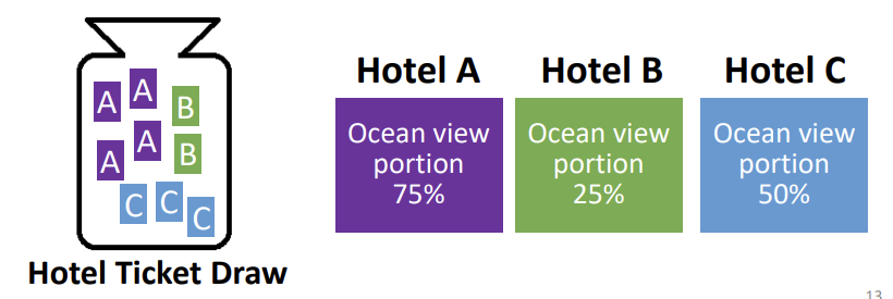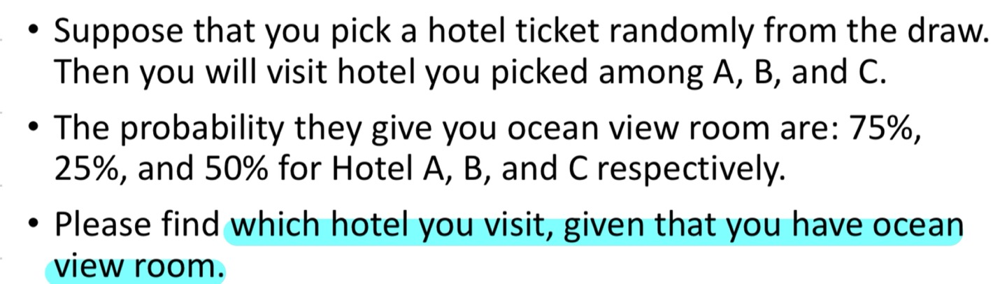 이 예제는 "내가 간 곳이 오션뷰일 때, 어떤 호텔을 뽑을 확률이 큰가?"에 대한 질문에 답을하는 예제입니다.