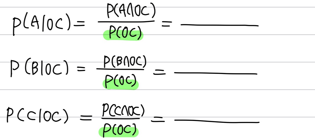 와 같은 수식을 써야하는데, 분모인 P(OC)가 동일하게 유도됩니다.