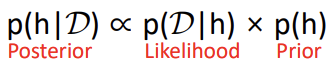 의 식에서 p(h/D)는 MAP, p(D/h)는 MLE로 작용하고, p(h)는 prior가 됩니다.
