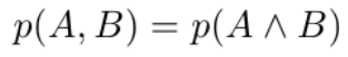 A사건과 B사건이 동시에 일어날 확률은 위와 같이 표현됩니다.