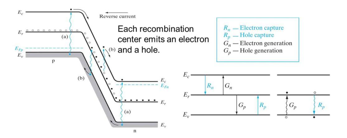 p-n junction에 reverse bias를 걸어주면, transition영역에 carrier가 열E로 인해 generation됩니다. 상황을 살펴보면,