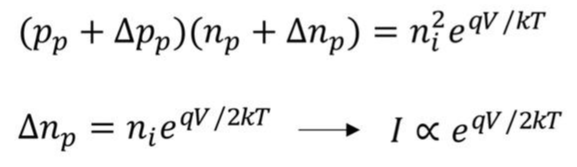 위와 같은 비율로 recombination이 일어나고, 이상적으로 흐르는 전류를 정리해 보면 다음과 같습니다.