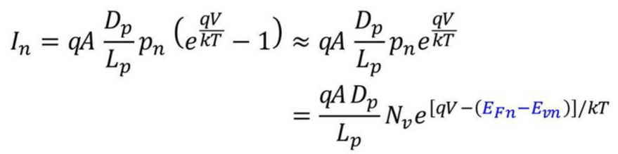 위 식에서 (E_Fn - E_vn)은 p+n에서 유의미하게 큰 값을 가지는 contact potential의 결정인자가 되고,