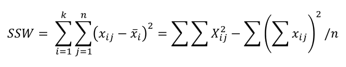 하위 모집단 내 변동으로, 각 하위모집단으로 부터 추출된 표본의 평균과 각 표본 데이터 차이의 제곱 합을 말합니다.